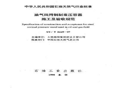 SY/T 0449-1997 油气田用钢制常压容器施工及验收规范 SY/T0449-1997 标准下载解压密码:www.bzxz.net