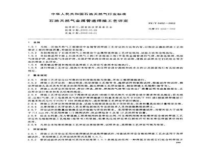 中华人民共和国石油天然气行业标准石油天然气金属管道焊接工艺评定批准部门:国家经济贸易委员会批准日期:2002-05-28