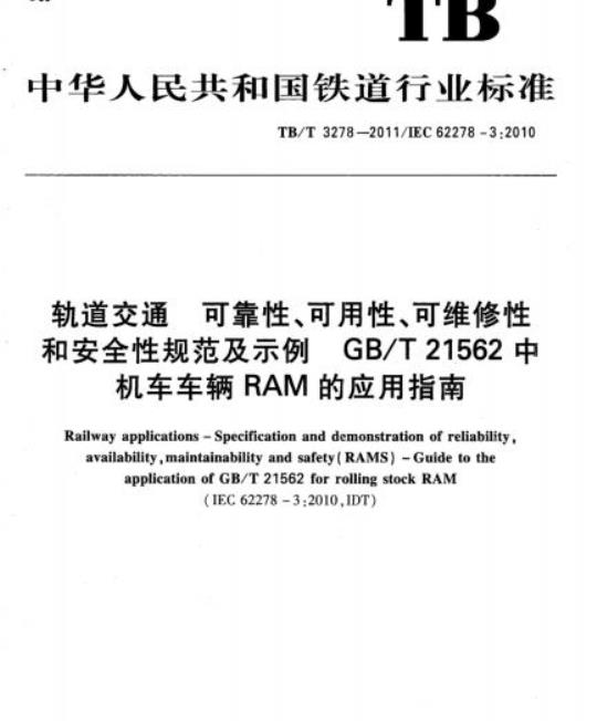 TB/T 3278为GB/T21562中机车车辆的RAM应用所要求的邀请、投标、运营验证等系统寿命周期活动提供指导。所有提及条目编号都按照GB/T 21562-2008。