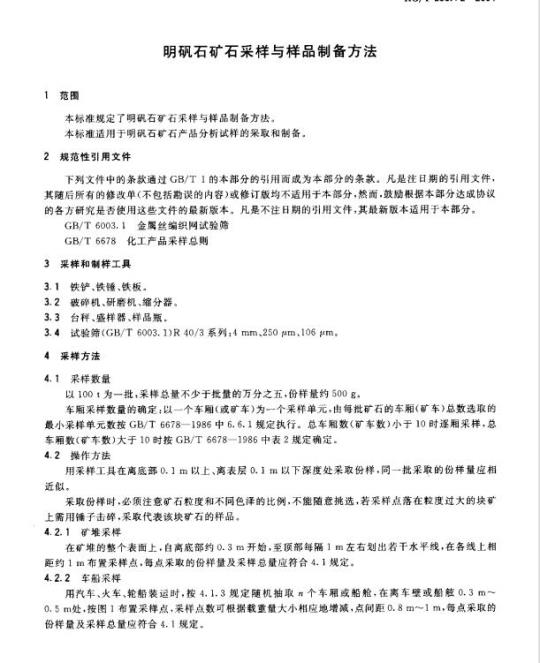 明矾石矿石采样与样品制备方法本标非规定了制证名矿有天样导样品制务方本标难站币:明证石过心产而分析试样的英取和制备,2规范性引用文件