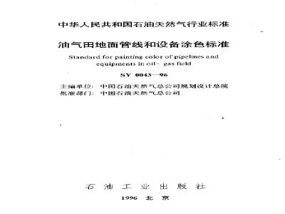 SY 0043-1996 油气田地面管线和设备涂色标准 SY0043-1996 标准下载解压密码:www.bzxz.net