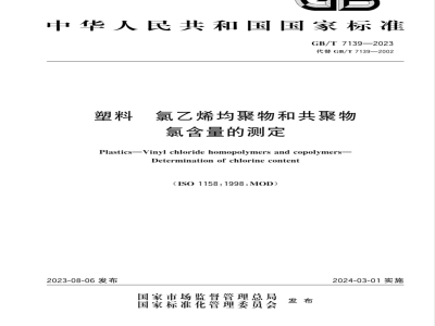 本文件代替GB/T7139一2002《塑料氯乙烯均聚物和共聚物氯含量的测定》,与GB/T71392002相比,除结构调整和编辑性改动外,主要技术变化如下:a)