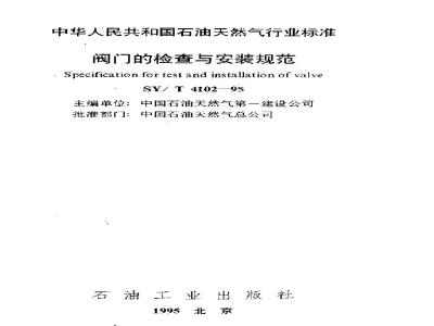 本规范适用于油气田地面建设工程、长输管道工程及石油化工建设工程通用的闸阀、截止阀、旋塞阀、球阀、止回阀和蝶阀的采购、到货检查、试压及安装。其他类型的阀门经与设计或供货厂家协商同意,也可参照执行。 SY/T 4102-1995 阀门的检查与安装规范 SY/T4102-1995 标准下载解压密码:www.bzxz.net
