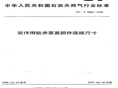 SY/T 5002-1996 双作用钻井泵易损件连接尺寸 SY/T5002-1996 标准下载解压密码:www.bzxz.net