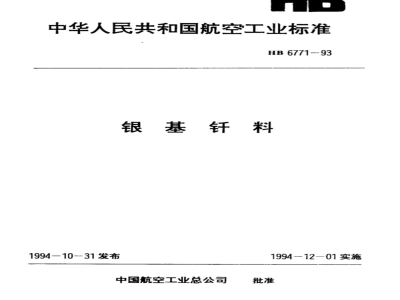中国航空工业总公司1994-10-31发布牌号