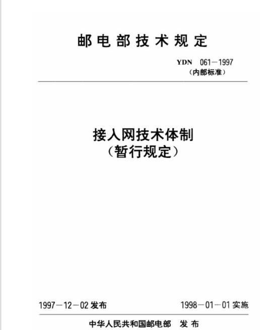 YDN 061规定了接入网的主要公用技术要求以及采用各种传输手段的接入传输系统的基本进网技术要求,适用于公用电信网的接入网环境,也可供专用电信网参照使用。本标准既适用于电路交换方式的用户接入,也适用于分组交换方式和IP的用户接入。