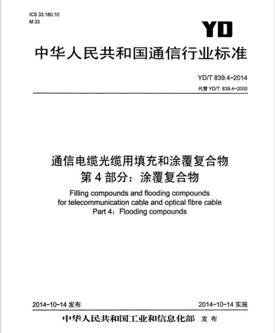YD/T 839.4适用于涂覆于通信电缆光缆护层空隙中的复合物。