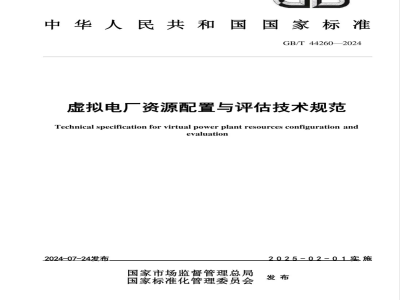 虚拟电厂资源配置与评估技术规范本文件规定了虚拟电厂的资源配置要求,描述了虚拟电厂资源配置评估方法。GB/T 44260—2024