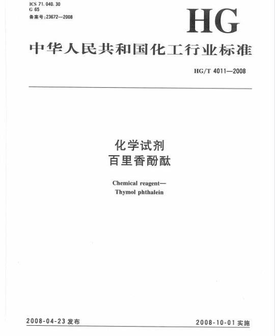 HG/T 4011适用于化学试剂百里香酚酞的检验。