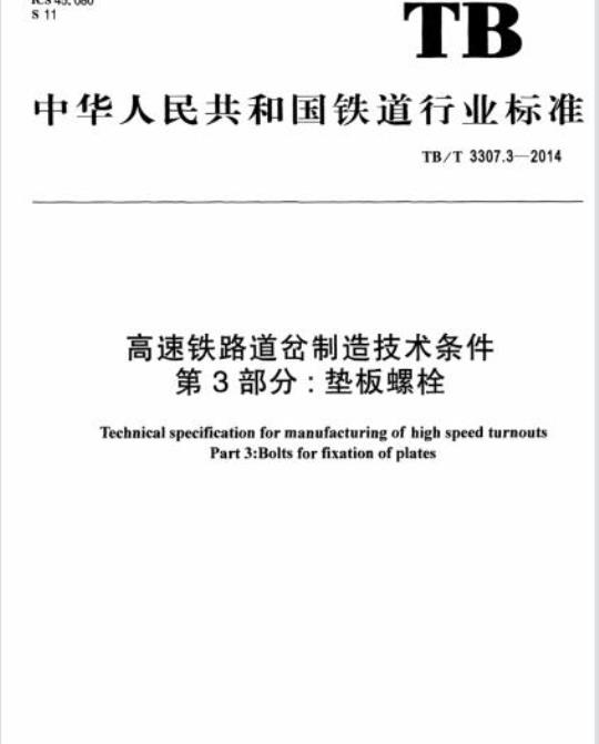 Technical specification for manufacturing of high speed turnoutsPart 3:Bolts for fixation of platesTB/T3307.3—2014