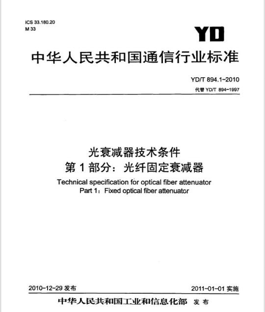 YD/T 894.1适用于光纤固定衰减器。