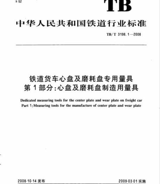 TB/T3198《铁道货车心盘及磨耗盘专用量具》分为两个部分:第1部分心盘及磨耗盘制造用量具:-第2部分心盘及磨耗盘检修用量具。本部分为TB/T3198的第1部分。