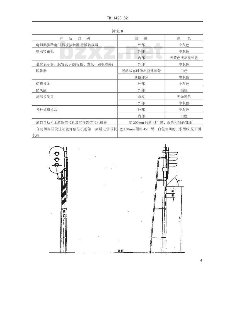 TB 1423采用的颜色除银、黑、白三色外,其余均符合GB 3181-82《漆膜颜色标准样本》中相应的颜色。