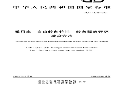 中文名称:乘用车 自由转向特性 转向释放开环试验方法