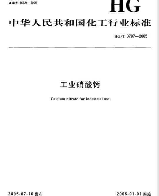 HG/T 3787规定了工业硝酸钙的要求、试验方法、检验规则、标志、标签和包装、运输、贮存。.