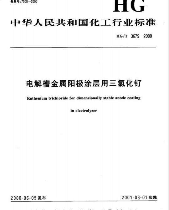 HG/T 3679-2000.Ruthenium trichloride for dimensionally stable anode coating in electrolyzer.