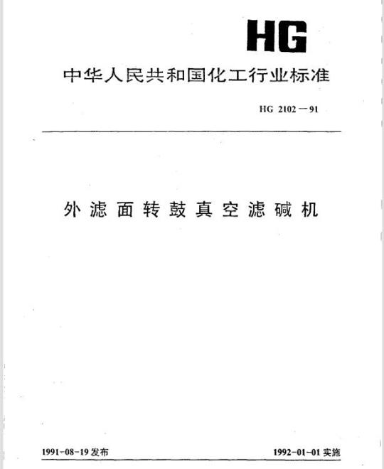 HG 2102适用于纯碱生产用、过滤面积不大于20 m2的滤碱机.