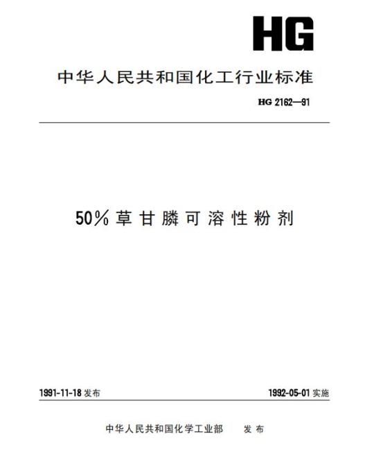 HG 2162规定了草甘膦可溶性粉剂的技术要求、检验方法、检验规则及标志、包装、运输和贮存。