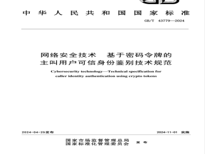 中文名称:网络安全技术 基于密码令牌的主叫用户可信身份鉴别技术规范