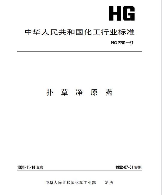 HG 2201规定了扑草净原药的技术要求、试验方法、检验规则以及标志、包装、运输和贮存要求。