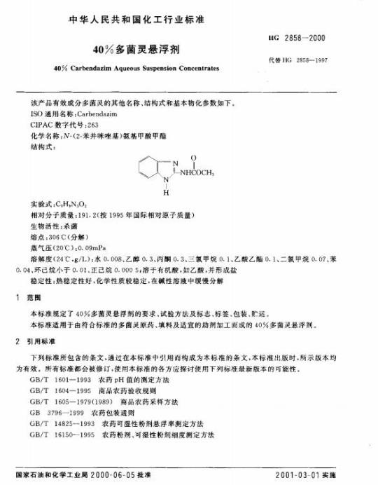 HG 2858-2000.40% Carbendazim Aqueous Suspension Concentrates.