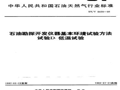 SY/T 5420-1991 石油勘探开发仪器基本环境试验方法 试验D:低温试验 SY/T5420-1991 标准下载解压密码:www.bzxz.net