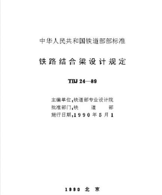 第1.0.1条 TBJ 24适用于国家铁路网中1435mm标准轨距铁路钢板梁和钢筋混凝土板通过联结器结合在一起共同承受荷载的上承式结合梁的设计。