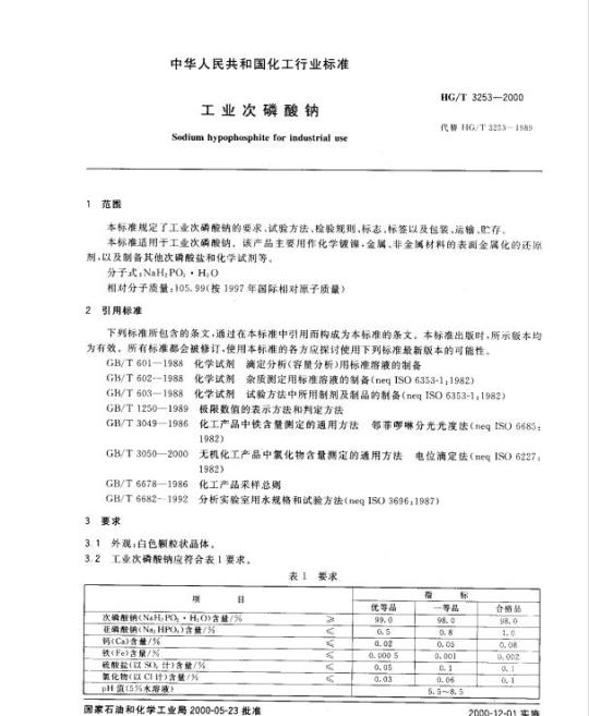 HG/T 3253-2000.Sodium hypophosphite for industrial use.