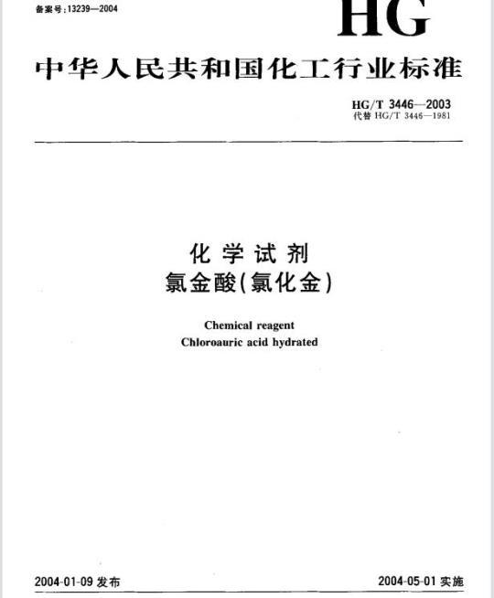 HG/T 3446规定了化学试剂氯金酸的规格、试验方法、检验规则和包装及标志。