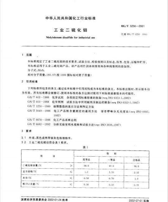 HG/T 3256-2001.Molybdenum disulfide for industrial use.