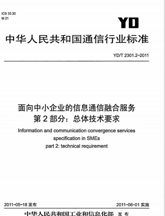 YD/T 2301.2-2011.Information and communication convergence services specification in SMEs part 2: technical requirement.