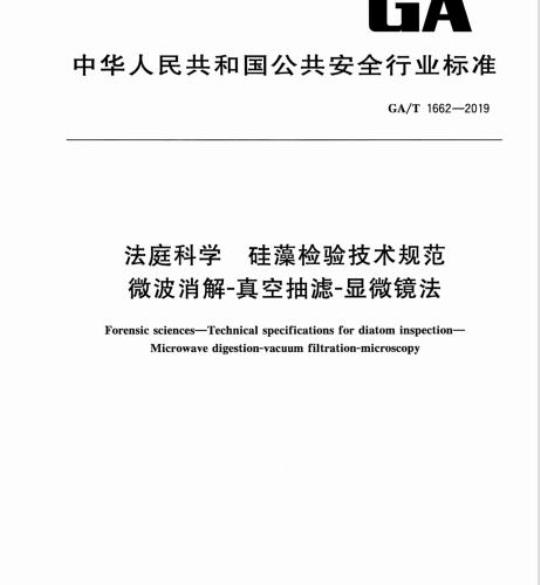 GA/T 1662-2019.Forensic sciences-Technical specifications for diatom inspection-Microwave digestion-vacuum filtration-microscopy.