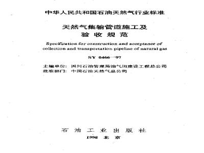 Specification for construction and acceptance ofcollection and transportation pipeline of natural gasSY 0466--97