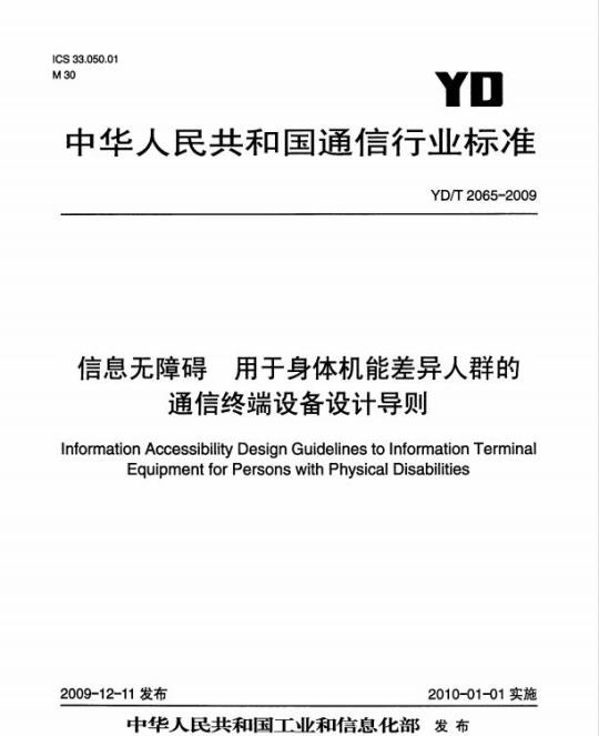 YD/T 2065-2009.Information Accessibility Design Guidelines to Information Terminal Equipment for Persons with Physical Disabilities.