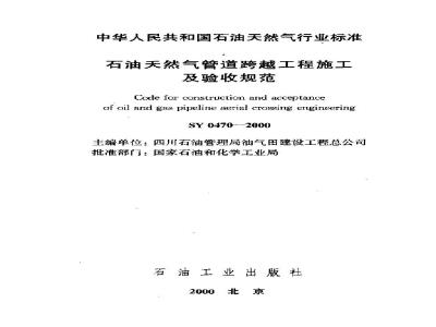 SY 0470-2000 石油天然气管道跨越工程施工及验收规范 SY0470-2000 标准下载解压密码:www.bzxz.net