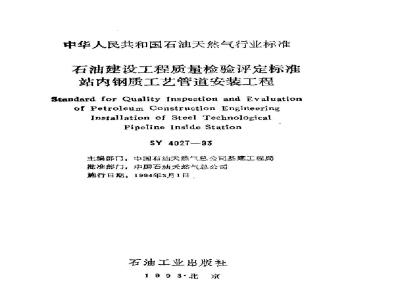 石独建设工程插量检验评定标准设备安装工程(代替SYJn4028-88)石油建设工程质量检验评定标准长输管道线路工程(代替SYJn4029元88)