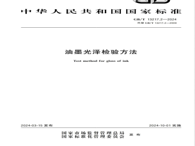本文件描述了油墨光泽的检验方法GB/T13217.2—2024