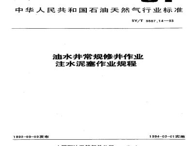 SY/T 5587.14-1993 油水井常规修井作业 注水泥塞作业规程 SY/T5587.14-1993 标准下载解压密码:www.bzxz.net