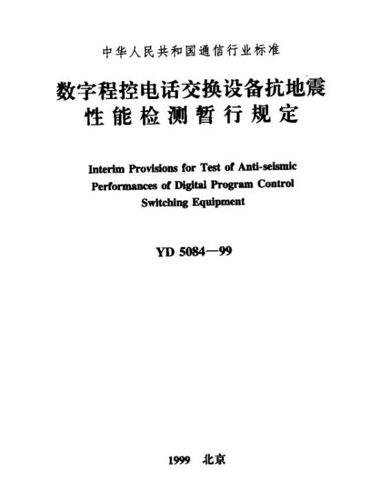 1.0.1YD 5084规定了数字程控电话交换设备抗地震性能试验的技术性能检测项目、检测内容和评估方法。