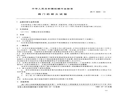 本标准规定了阀门耐火试验的一般要求、试验系统、试验方法和性能要求。JB/T 6899--- 93