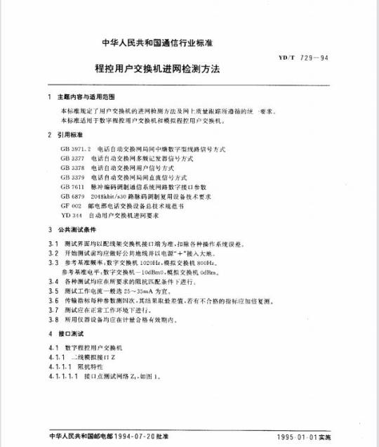 YD/T 729-1994.