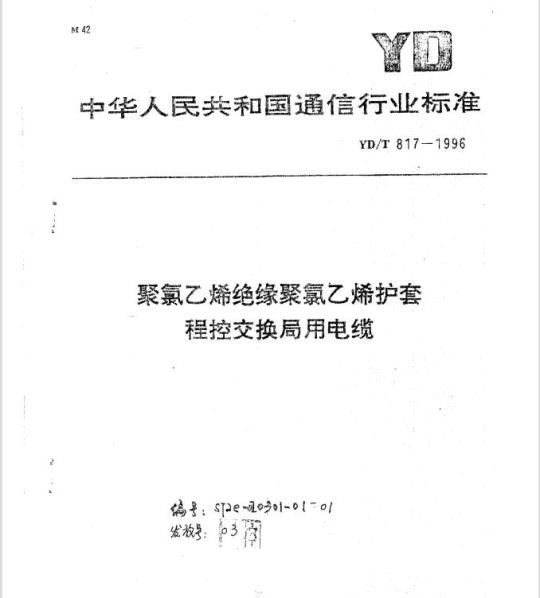 YD/T 817规定了聚氯乙烯绝缴聚氯乙烯护套程控交换局用电缆(以下简称为电缆)的结构.要求、试验方法、标志、包装等。
