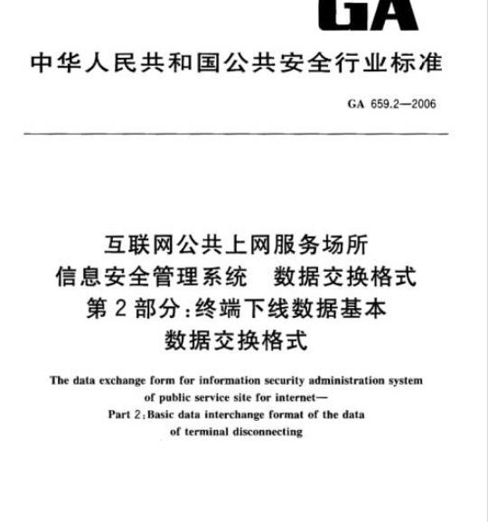 GA 659.2规定了我国互联网公共上网服务场所信息安全管理系统对终端下线数据进行处理和交换时的基本数据交换格式。