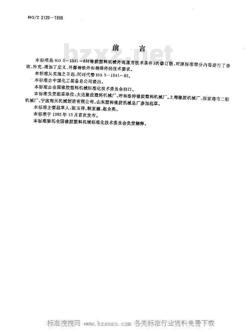 本标准是HG5-1541-834橡胶塑料机械外观通用技术条件》的修订版,对原标准部分内容进行了修改、补充,增加了定义、外露铸铁件和焊件的技术要求。本标准从实施之日起,同时代替HG5—1541-83本标准由中国化工装备总公司提出。本标准由全国橡胶塑料机械标准化技术委员会归口。本标准负责起草单位:大连橡胶塑料机械厂、呼和浩特橡胶塑料机械厂。上海橡胶机械厂、张家港市二轻机械厂、宁波海天机械制造有限公司、山东塑料橡胶机械总厂参加起草。本标准主要起草人:张玉祥、韩亚娜、赵全英。本标准于1983年10月首次发布。本标准委托全国橡胶塑料机械标准化技术委员会负资解释。1范画