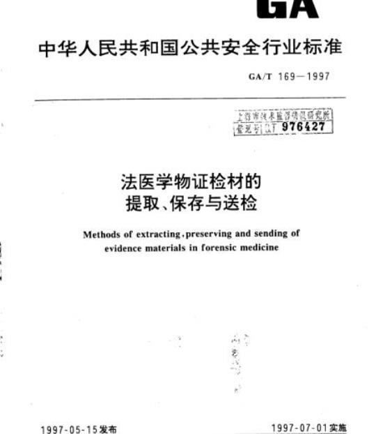 GA/T 169-1997.Methods of extracting,preserving and sending of evidence materials in forensic medicine.