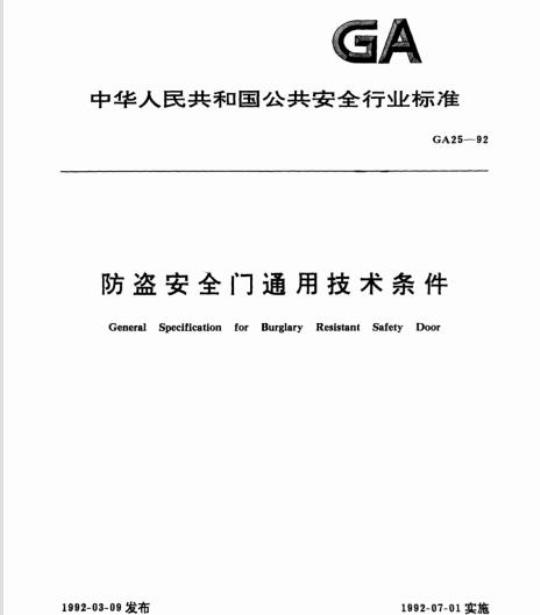 GA 25规定了防盗安全门的通用技术要求和测试方法.