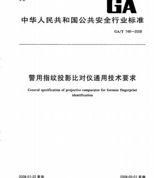 GA/T 748-2008.General specification of projective comparator for forensic fingerprint identification.