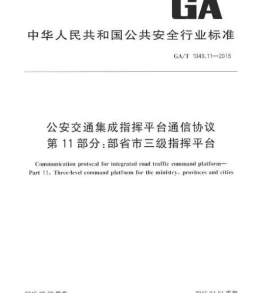 中文名称:公安交通集成指挥平台通信协议第11部分:部省市三级指挥平台
