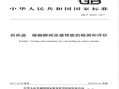 中文名称:纺织品 接触瞬间凉感性能的检测和评价
