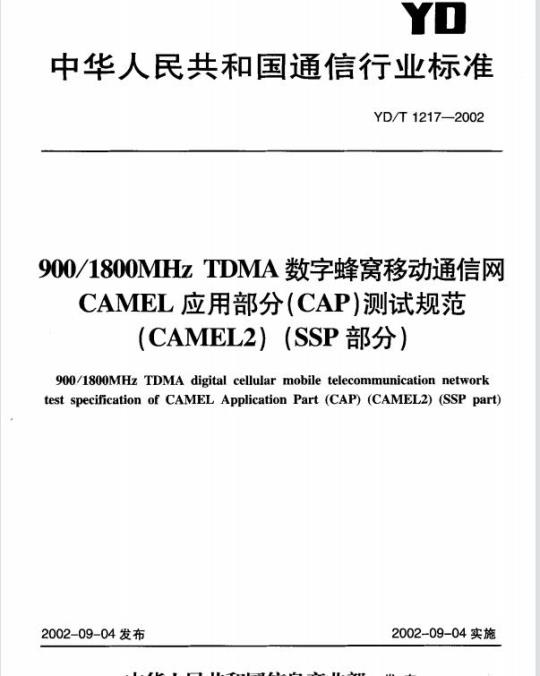 900/1800MHz TDMA digital cellular rnobile telecommunication networktest specification of CAMEL Application Part (CAP) (CAMEL2) (SSP part)2002-09-04发布